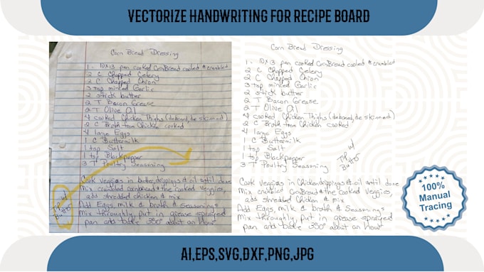 Did an amazing job recreating a handwritten recipe to an SVG file for engraving.